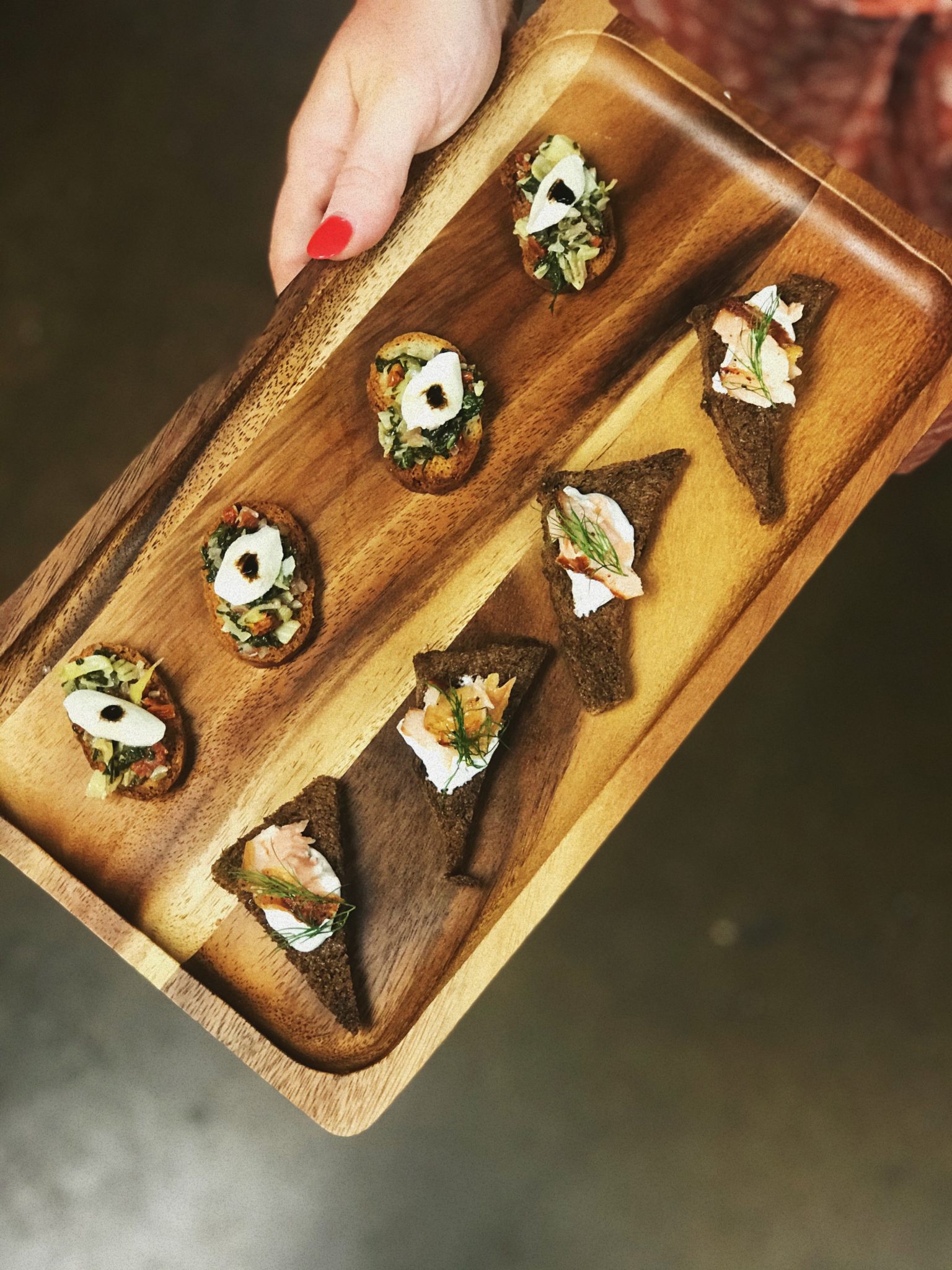 Fines Herbs Deviled Eggs w/ Green Olive Tapenade